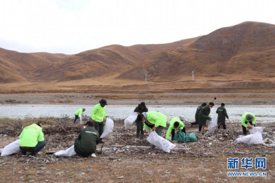 三江源國家公園治多生态環保協會(huì)的(de)志願者在撿拾垃圾(6月(yuè)15日攝)。新華社發